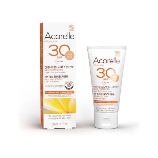 Acorelle Ansigt Creme Farve Guld SPF30 50ml er en farvet ansigtscreme, der hjælper med at beskytte ansigtshuden mod de skadelige virkninger af UVA og UVB stråler.