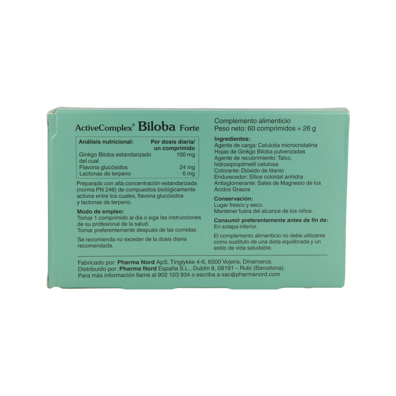 Aktiv kompleks Biloba Forte indeholder 24% af flavon-glucosider , bioflavonoider, der er ansvarlige for Ginkgo 's antioxidant og antiaggregante aktivitet, hvilket favoriserer en normal perifer blodcirkulation . Nogle af fordelene er:
