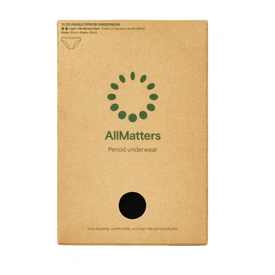 AllMatters Menstruationsbikini Cueca Fluxo Moderado M 1 Enhed er et plagg designet til at tilbyde komfort og sikkerhed under menstruationen. Disse menstruationsunderbukser er fremstillet til at være vandafvisende og forhindre lækager, hvilket giver større tillid i din daglige brug.