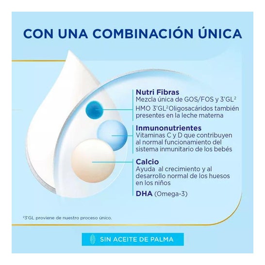 Derudover er sammensætningen fri for palmeolie og indeholder NutriFibres GOS/FOS og HMO 3'GL, et oligosakkarid, der også findes i modermælk, fra en unik Almirón-proces.