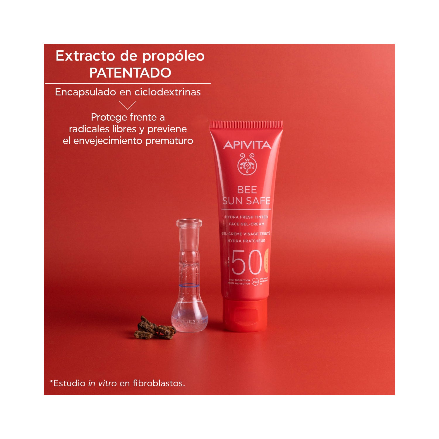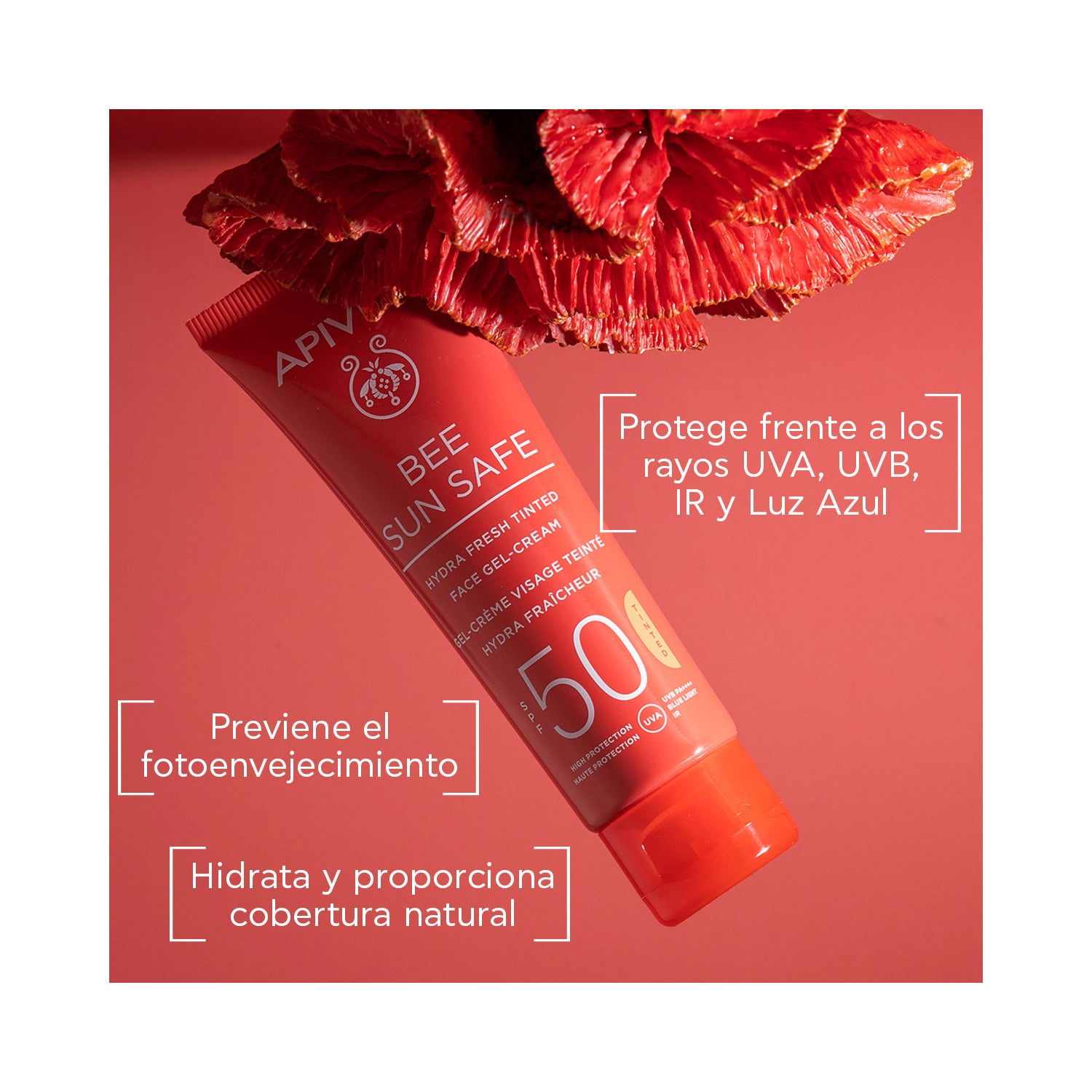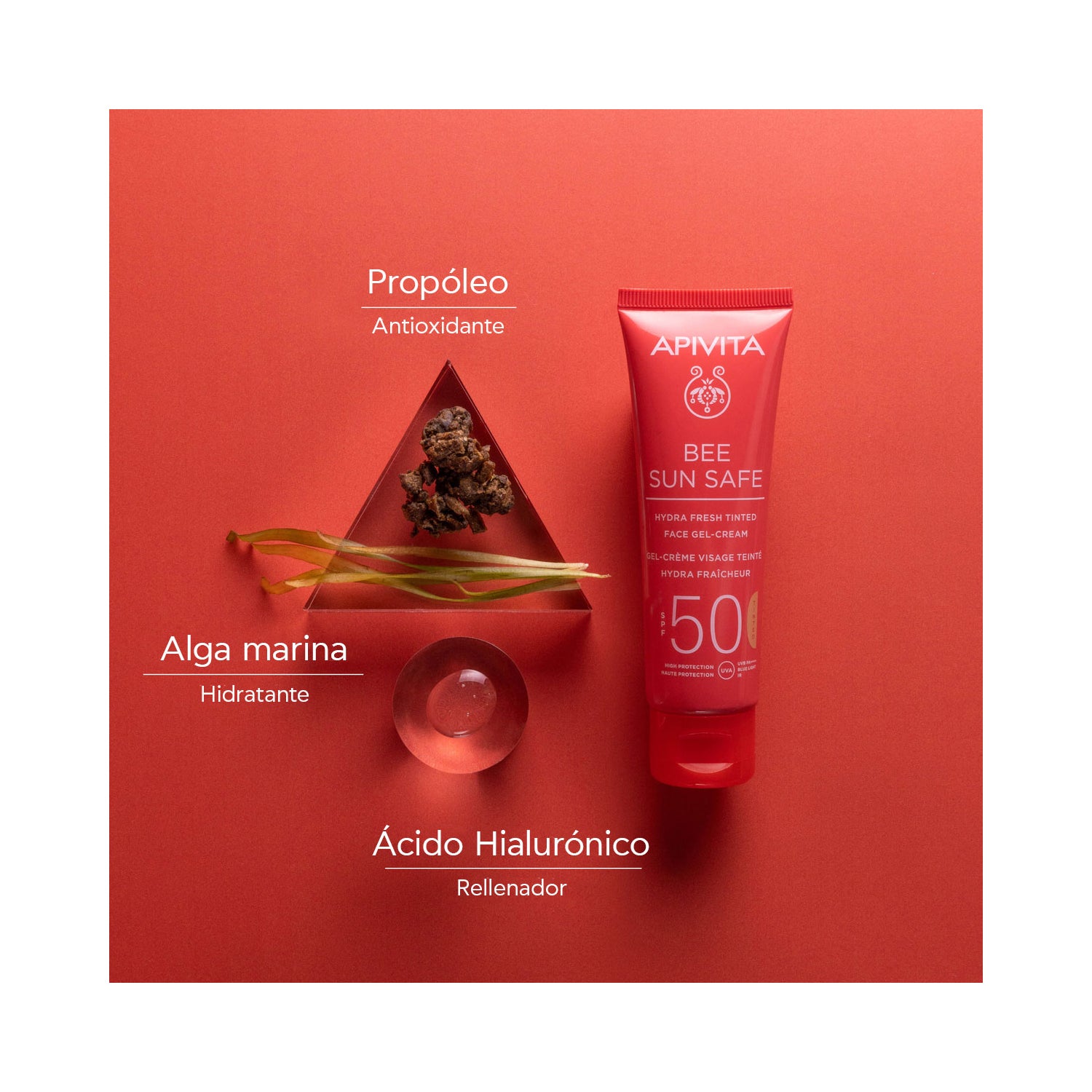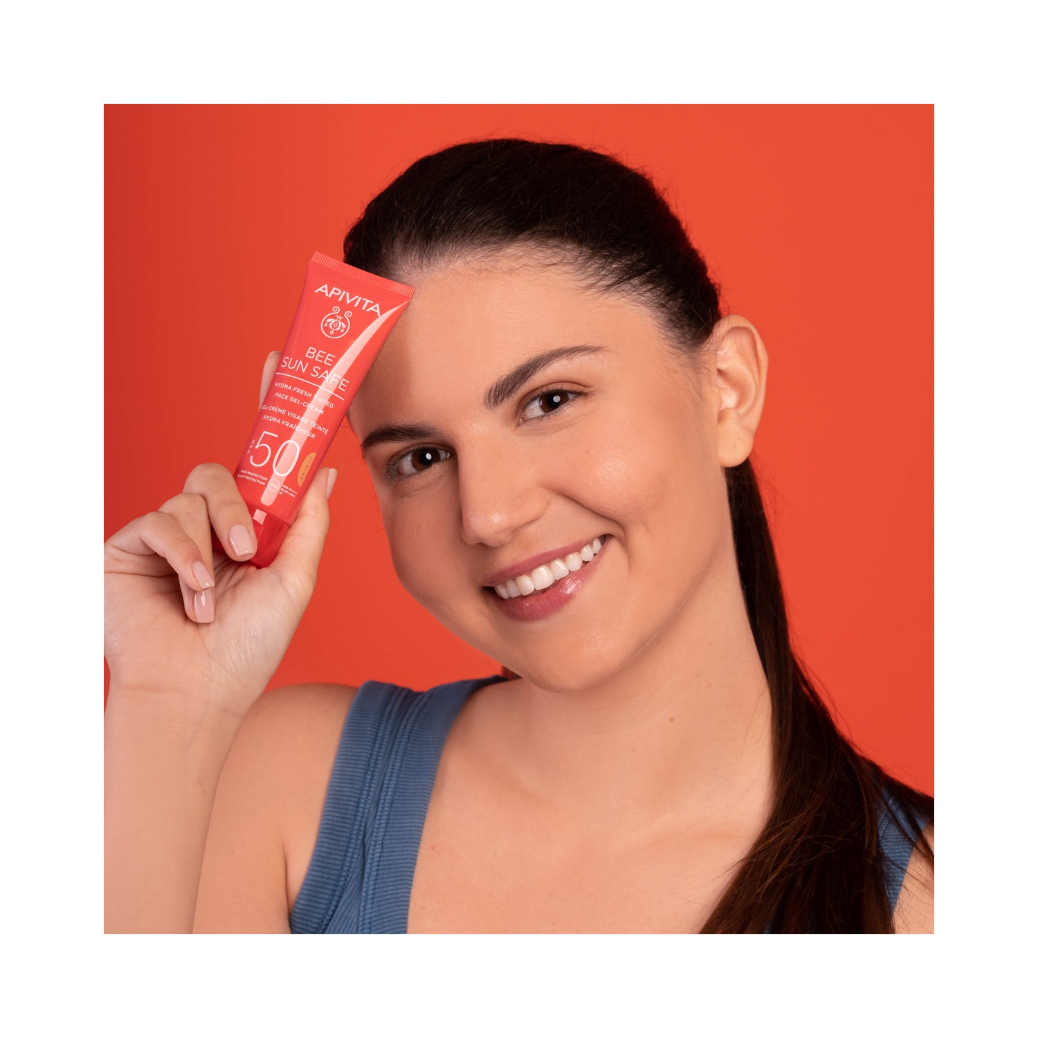 Apivita Bee Sun Safe Hydra Fresh Gel-Cream med Farve SPF50 50 ml er en gel-creme, der hjælper med at beskytte ansigtets hud mod solens stråler. Denne creme med SPF 50 giver en middel-høj beskyttelse, samtidig med at den bidrager til at holde huden frisk og hydreret.