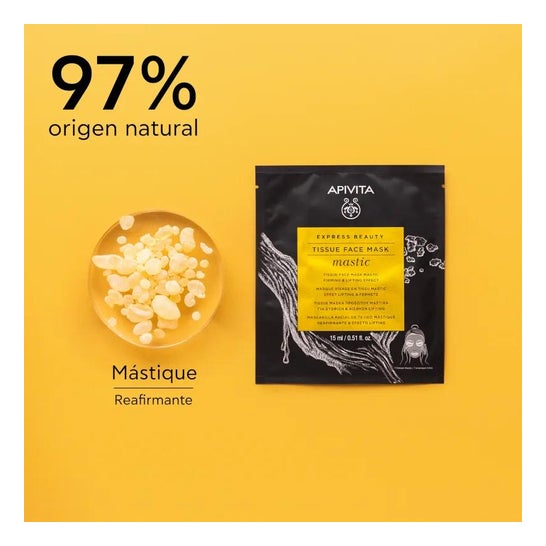 Apivita ansigtsmaske, der giver en beroligende og opstrammende effekt på dit ansigt takket være dens 97% indhold af naturlig oprindelse, som opstrammer og oplyser ansigtet og dermed fremmer dets elasticitet.