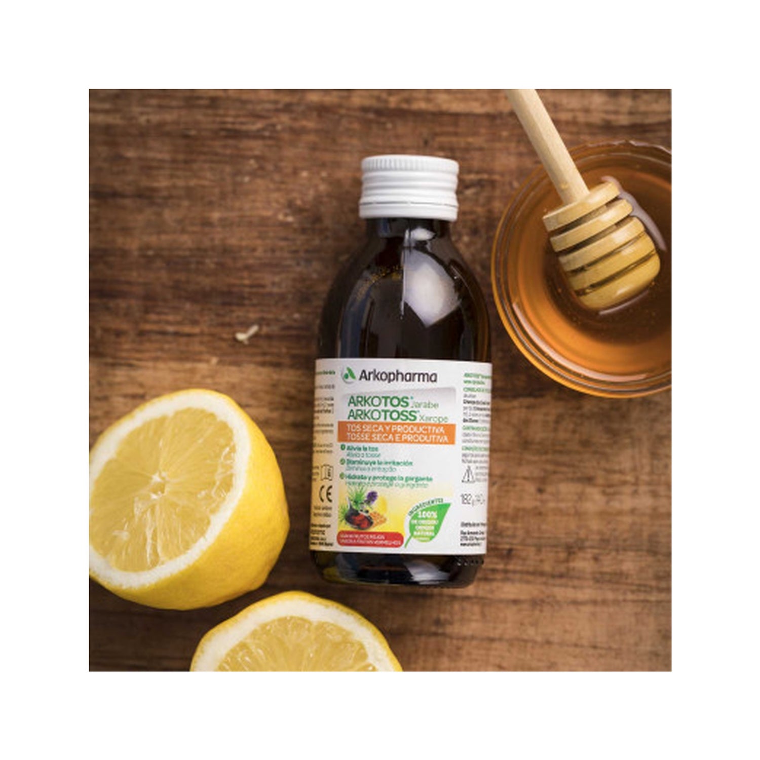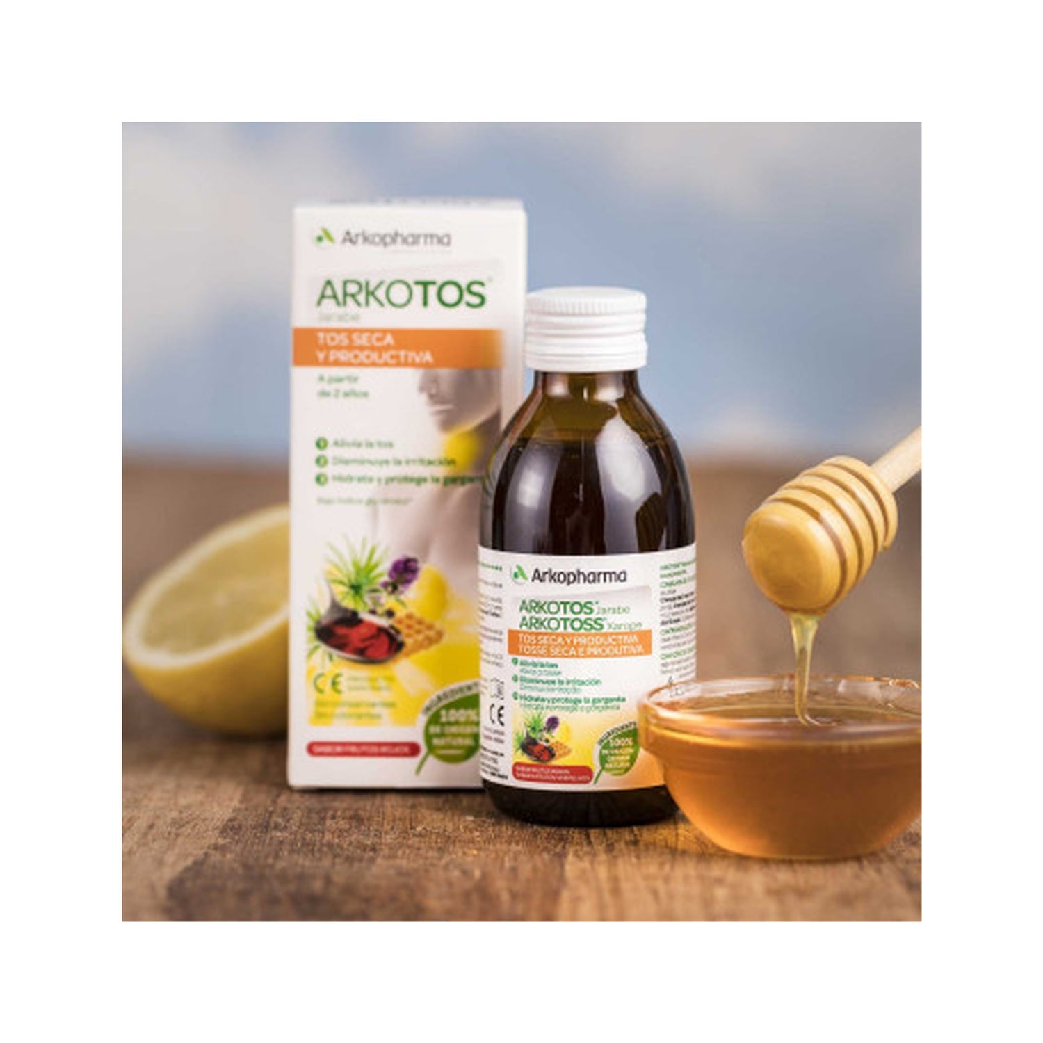Arkopharma Arkotos Tør og Produktiv Hoste Smag af Bær 140ml er en sirup med smag af bær beregnet til at behandle tør hoste og lindre smerter i irriteret hals.