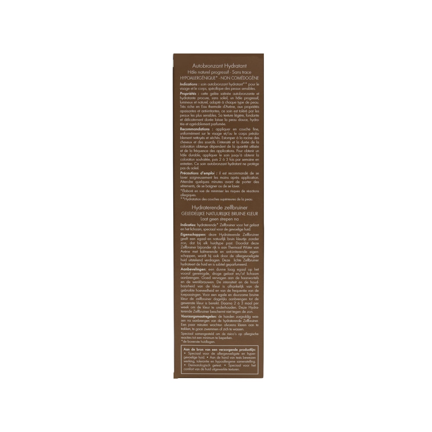 Med Avène selvdrink mælk vil du hydratisere og få en smuk naturlig og homogen solbrænding på bare 1 time og uden brug for sol, mens du forkæler din fod takket være den glatte tekstur, ikke fedtet, fugtgivende og behageligt parfumeret.