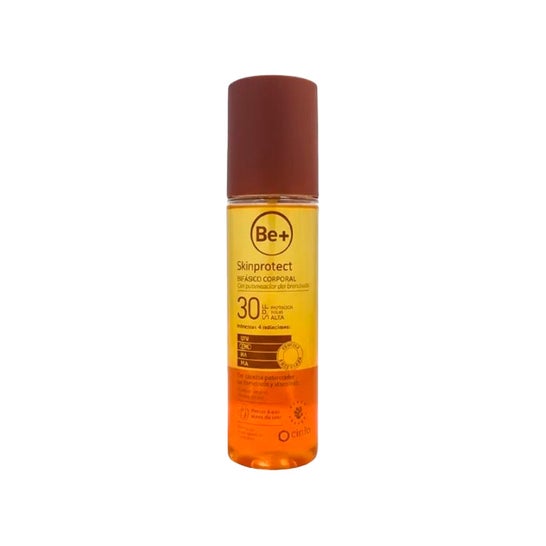 Be+ Skinprotect Bifasisk Accelererende Bruning SPF30 200ml er en fotobeskyttende kropsspray, der beskytter huden mod UVA, UVB, VIS og IR-A stråler. Dens bifasiske format på 200 ml skal rystes før brug for at blande formlen og lette en hurtig påføring.