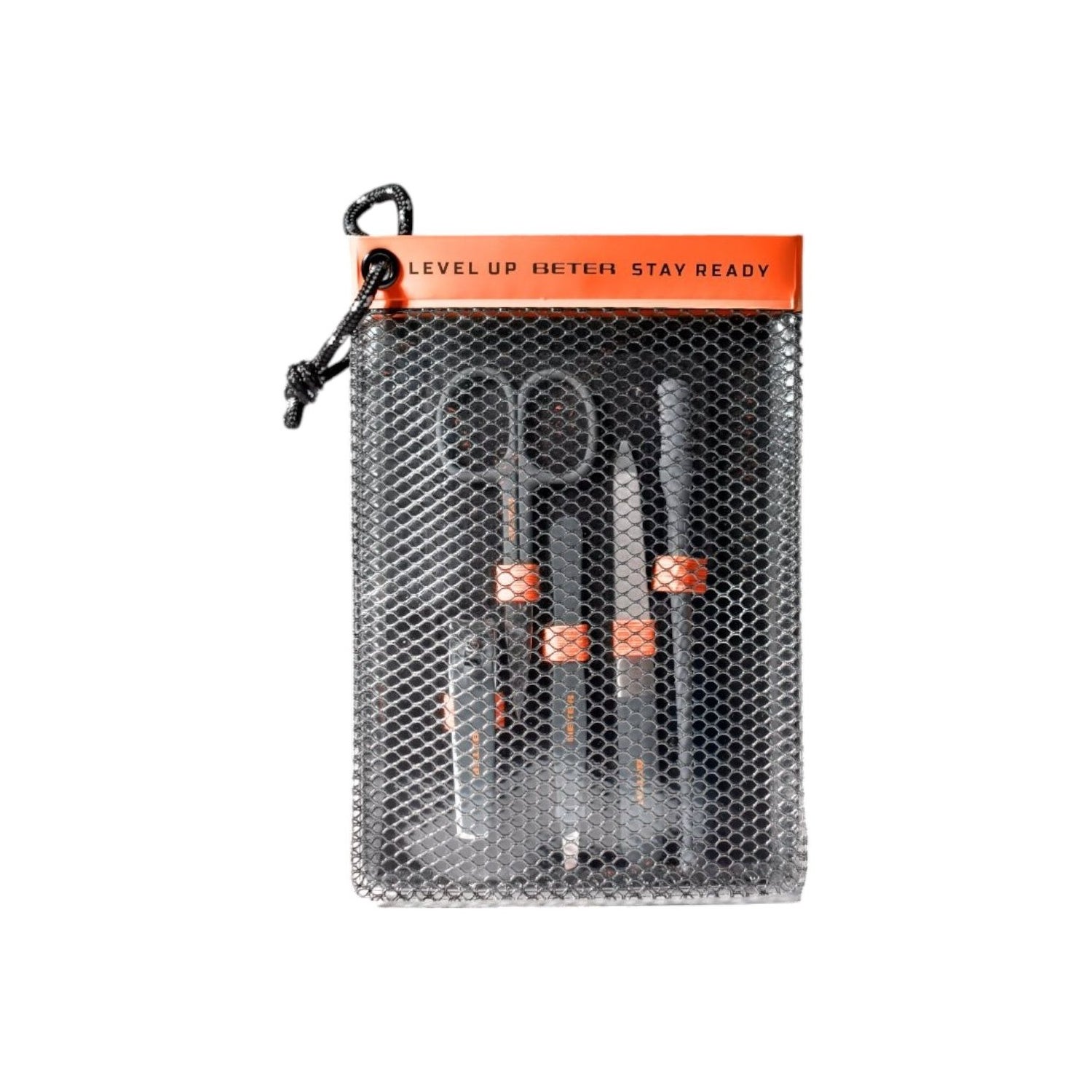 Beter Level Up Grooming Set Orange 5 stk rejsepleje sæt samler fem grundlæggende værktøjer til personlig pleje i et kompakt format, designet til rejser og til at opretholde en komplet hygiejne når som helst.