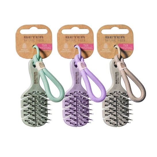 Beter Natural Fiber Mini Brush Charm 1 ud er en mini udredningsbørste til daglig hårpleje, designet til at tage med overalt. Den udretter skånsomt og hjælper med at reducere brud, både i vådt og tørt hår, især i fint og skrøbeligt hår.