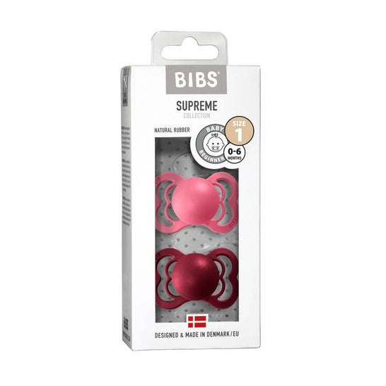 Pakke med to sutter designet med sutter af 100 % naturgummi med en flad, blød og fleksibel form, der ligner moderens bryst for større accept, med integreret ventil, der forhindrer barnet i at sluge luft og hjælper sutten med at flade ud og dermed undgå tryk på ganen og tandkødet. De er fremstillet af polypropylen, fri for BPA, PVC og phthalater og er fremstillet i henhold til strenge EN1400-standarder for at tilbyde en sut, der er sikker for barnet og opfylder alle sikkerhedskrav, med et sommerfugleformet, konvekse skjold med store huller, der giver mulighed for ventilation og forhindrer irritation omkring munden. Disse sutter har ikke en beskyttelseshætte. Farve koral og rubin. Størrelse 1, fra 0 til 6 måneder. *Produktets farve og design kan variere afhængigt af tilgængelighed.