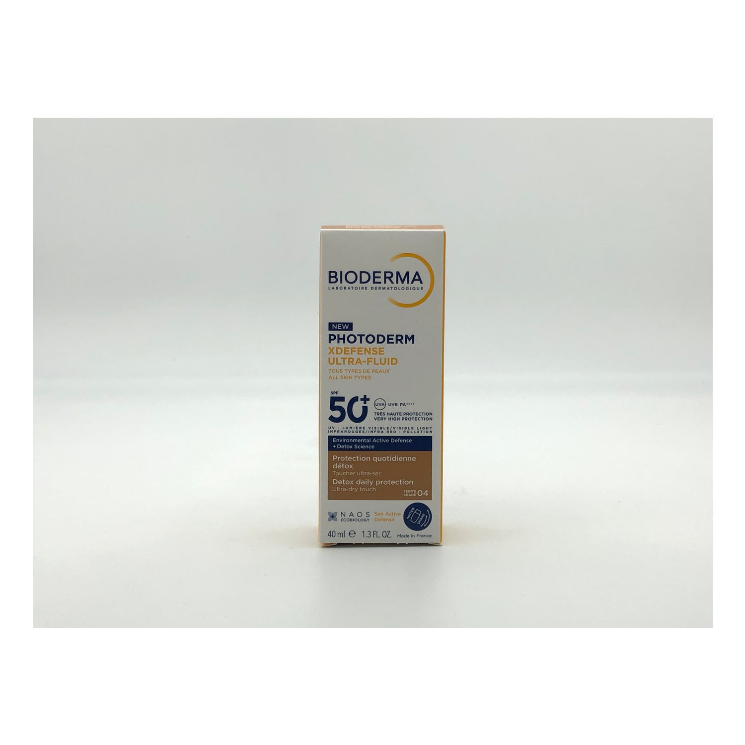 Photoderm XDefense Ultra-Fluid SPF50+ Tone 04: Lettere solbeskyttelse til ansigtet med detox-effekt og ultra-flydende tekstur.