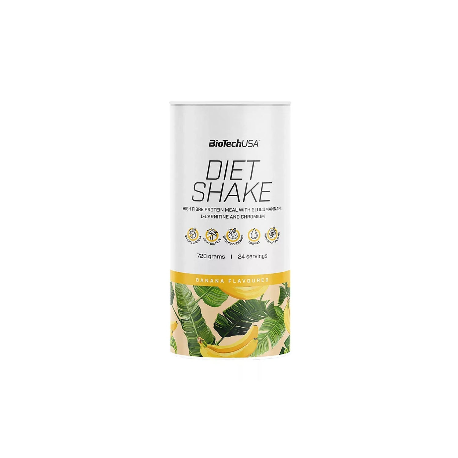 BioTech USA Diet Shake Banana 720g er en diætisk drik i pulverform, lavet af valleprotein og beriget med fiber. Dette produkt inkluderer: