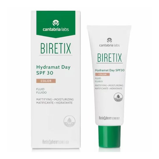 Biretix Hydramat Day SPF30 Fluido Color 50ml er et produkt designet til daglig pleje af fedtet hud og hud med tendens til akne. Dets lette og farvede formel giver en naturlig og mat finish med det samme, samtidig med at det tilbyder solbeskyttelse med en SPF30.