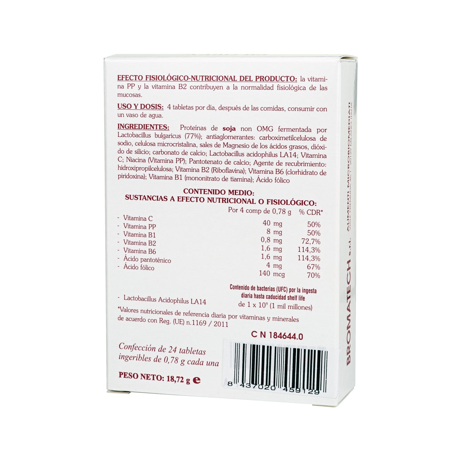 Et kosttilskud i kapselform, der er specielt designet til at hjælpe med at fremme balancen i tarmfloraen takket være dets sammensætning baseret på vitaminerne PP og B2, som bidrager til slimhindernes fysiologiske normalitet.