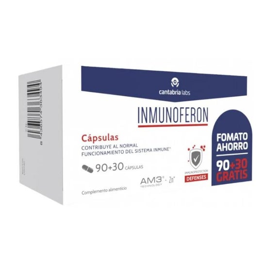 Cantabria Labs Inmunoferon 90caps + 30caps er et produkt designet til at modulere den cellulære immunrespons. Dens primære funktion er at hjælpe med at beskytte organismen mod infektioner, der optræder tilbagevendende.