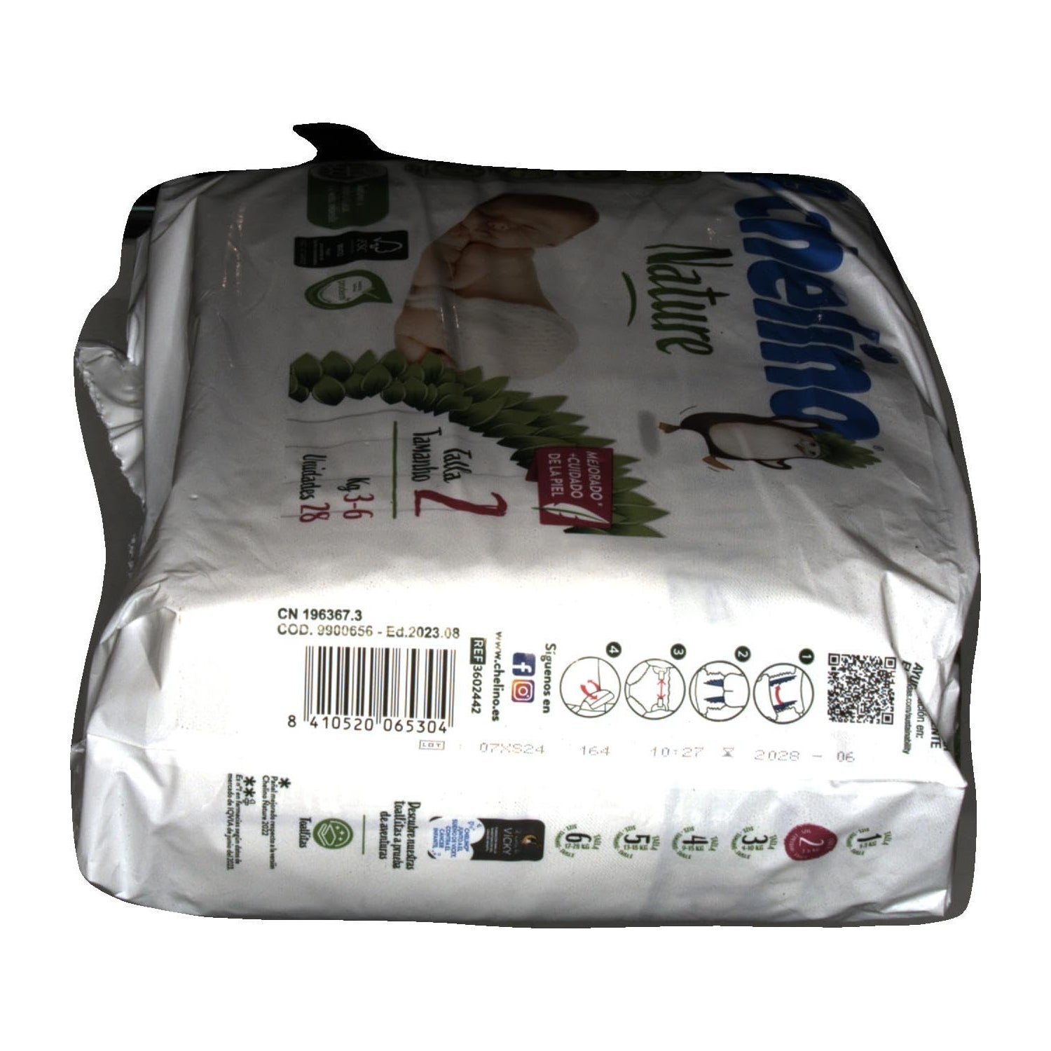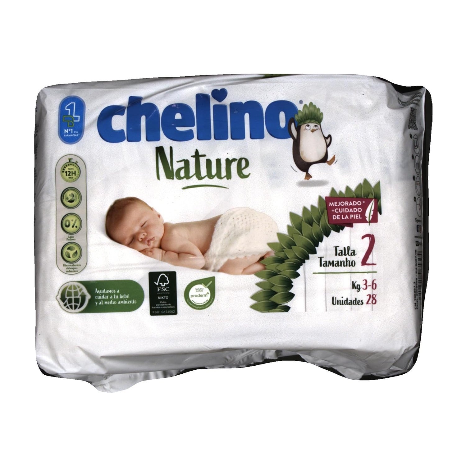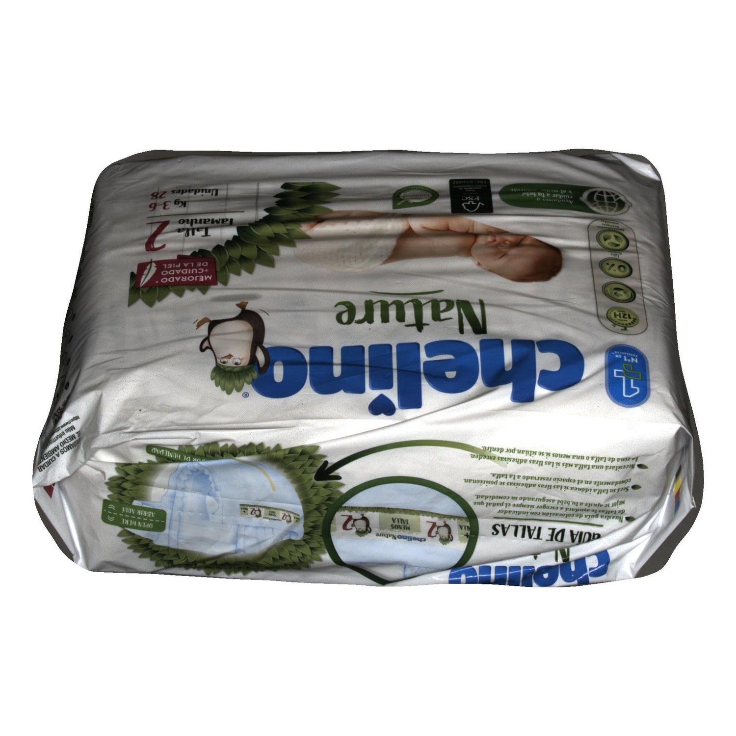 Dermobeskyttende bleer, der indeholder bånd med en fugtgivende lotion med naturlige ingredienser, der hjælper med at holde babyens hud sund og næret. Blesammensætningen holder barnet tørt i 12 timer. De er anatomisk udformet med Accordion Stretch-systemet med elastiske vinger, der letter barnets bevægelser uden at forårsage vanskeligheder. Chelino har produceret bleer, der også er miljøvenlige.