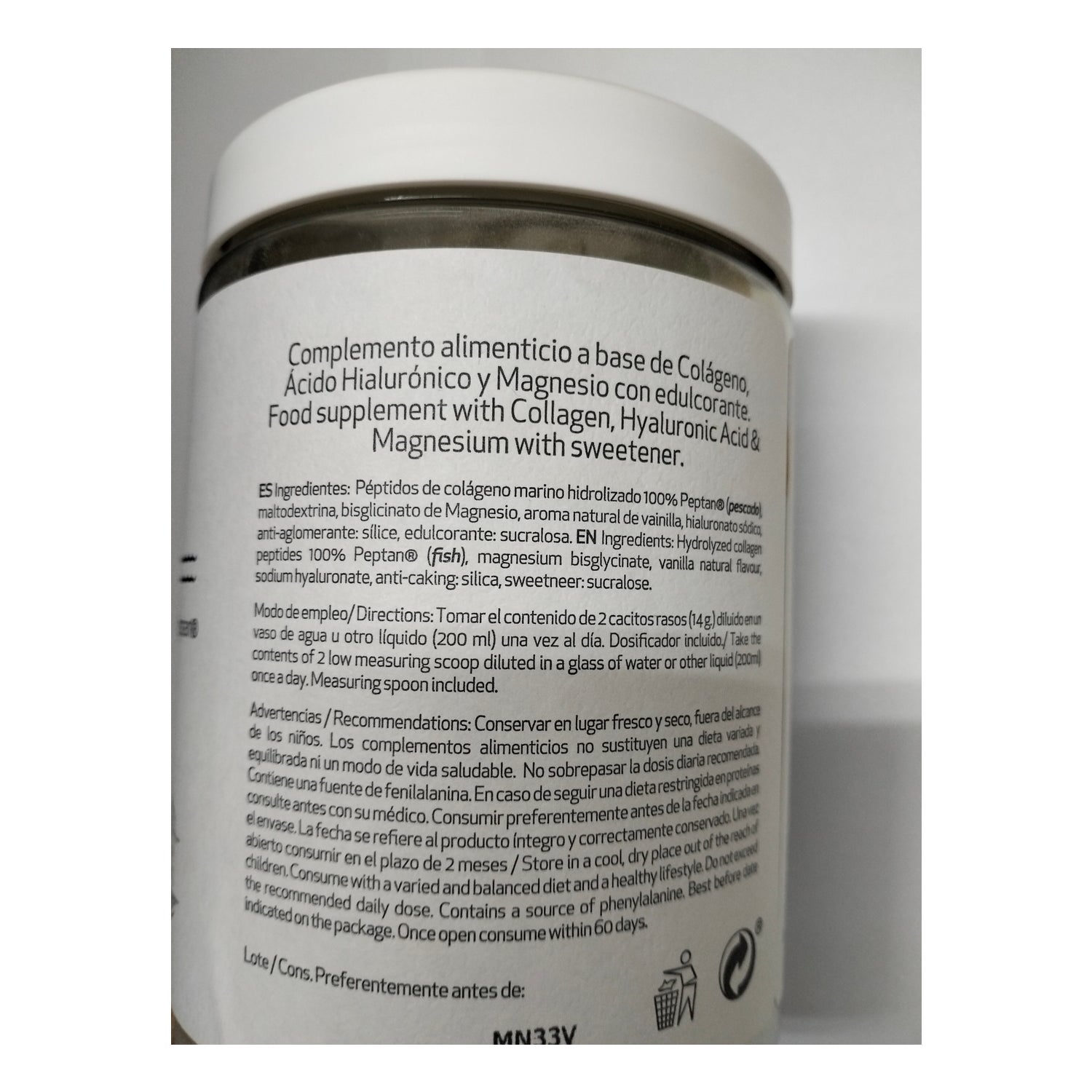 Med en behagelig vaniljesmag og i pulverform er dette tilskud udarbejdet ud fra et meget biotilgængeligt renset kollagenhydrolysat og hyaluronsyre.