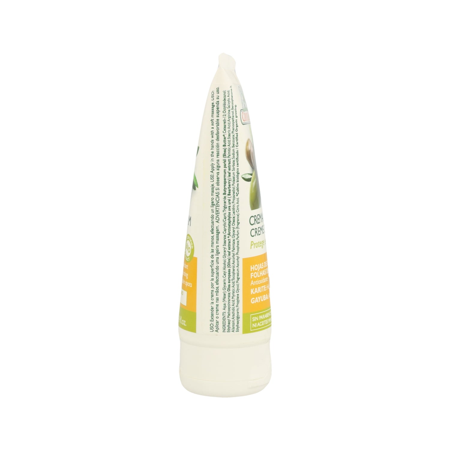 Håndcreme med beskyttende og fugtgivende behandling. Den er formuleret med olivenblade, sheasmør og bjørnebær, som kommer fra økologisk landbrug. Desuden er den beriget med C-vitamin, E-vitamin og ultraviolet filter A+B. Den rige sammensætning indeholder aktive ingredienser og filtre, der giver beskyttelse, hydrering og mindsker hudfejl.