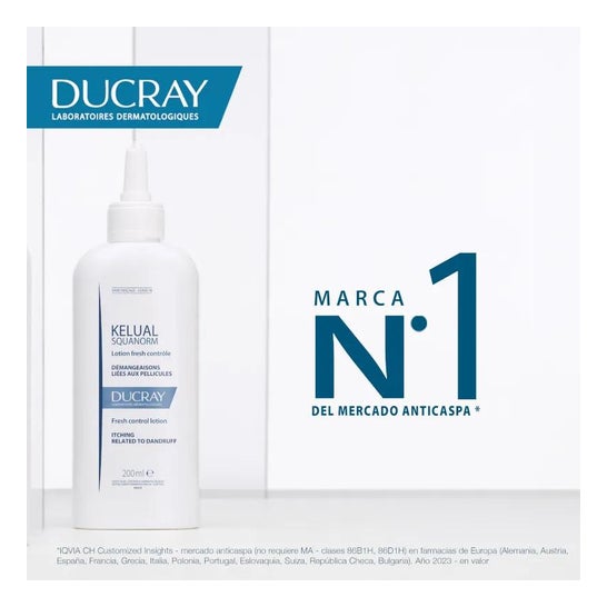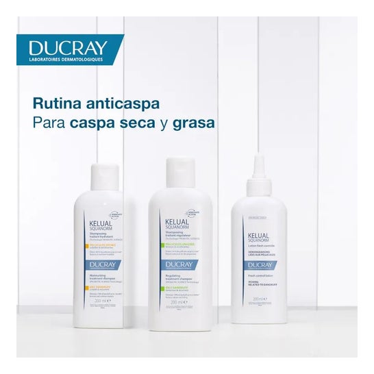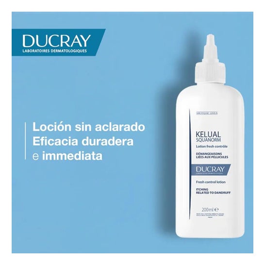 Ducray Kelual Squanorm Antiskæl Fresh Control Lotion 200ml er en behandling uden skylning, der fungerer som et supplement til antiskælshampoo.
