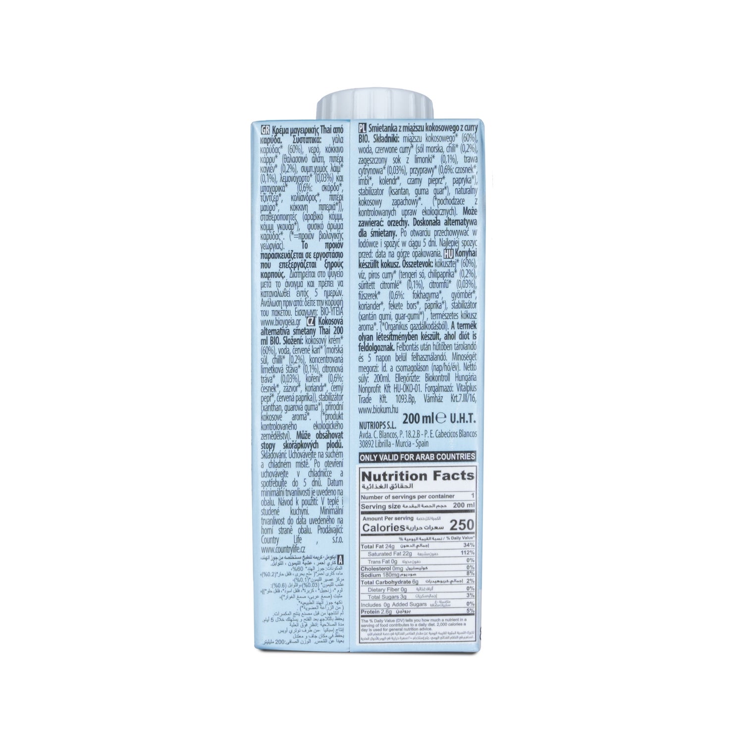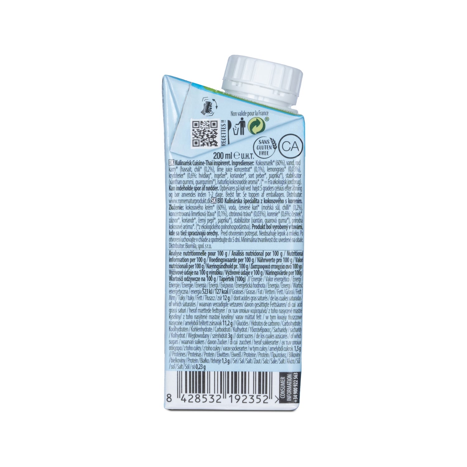 ECOMIL Cousine Thai Bio 200ml er en kokosdrink med en krydret berøring klar til at lave mad, alternativ til cremer eller soja. Økologisk produkt uden lactose , uden gluten , uden soja , uden æg og uden mælkeprotein. Velegnet til veganer og vegetarer.