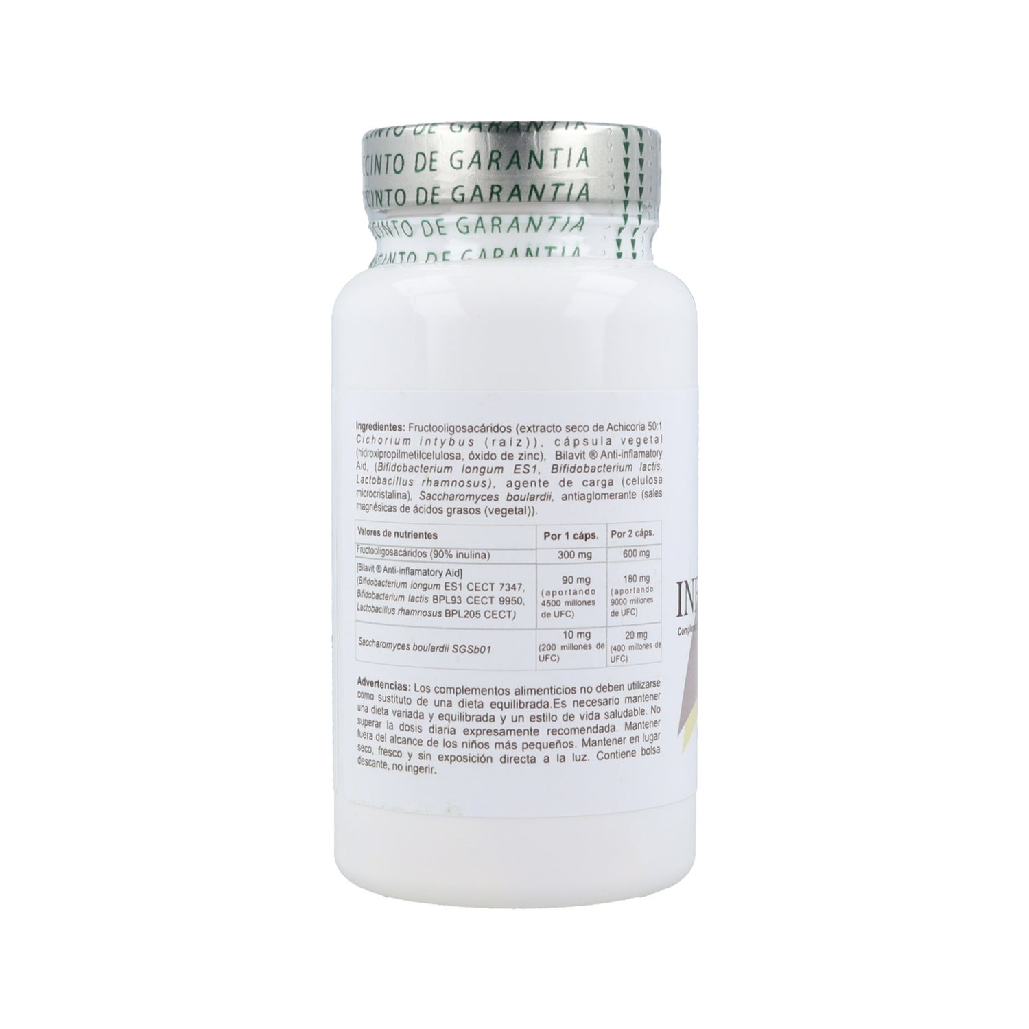 Kosttilskud i kapselform, fremstillet af inulin og 4 stammer af bifidobacterium, lactobacillus og saccharomyces, som er indiceret til at støtte og fremme mave-tarm-sundhed og hjælpe med at opretholde tarmfloraen. Det hjælper også med at styrke immunsystemets naturlige forsvar og giver, takket være inulin, en kraftig antiinflammatorisk effekt i tarmen.