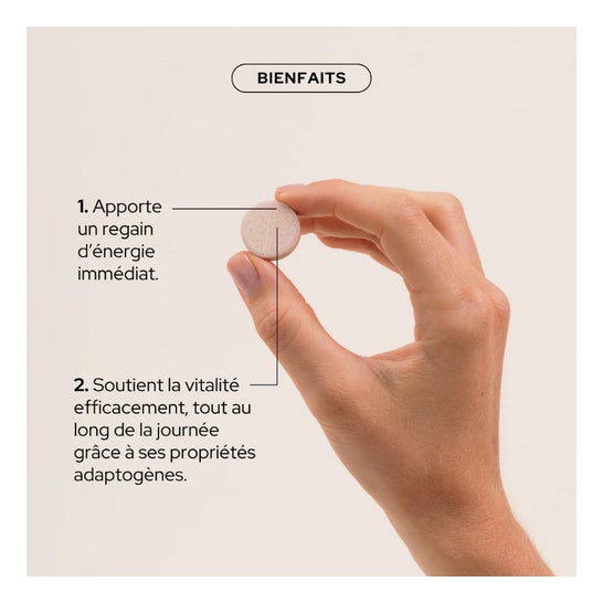 Tyggelige tabletter med smag af jordbær-brombær, pakket i en pose med 30 tabletter (Doypack). Passer til voksne, teenagere (+12 år) og børn (+4 år) i tilpassede portioner. Fremstillet i Frankrig.