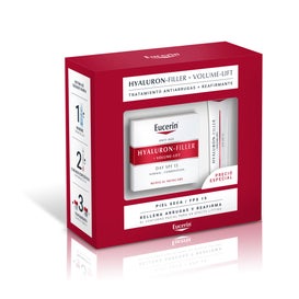 Eucerin® Lifting Ritual Pack Dry Skin er en pakke bestående af Eucerin® Hyaluron Filler Volume Lift Day Cream SPF15 Dry Skin 50 ml og en øjenkonturcreme fra samme serie 15 ml.