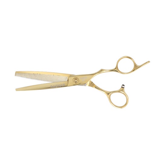 Eurostil Barber Scissors Sculpting 6.5" Glorious er et professionelt værktøj designet til at sculpt og teksturere hår med præcision i barbershops og saloner. Den er fremstillet af japansk 440C stål af høj kvalitet, med en hårdhed på 59-61 HRC, hvilket sikrer et blødt og holdbart snit.