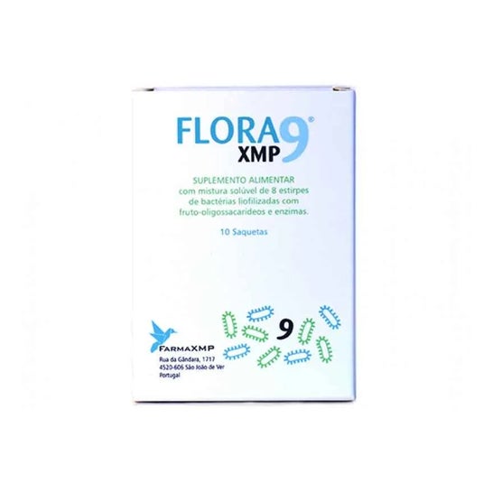 Flora 9 XMP 10x4g er et kosttilskud, der kombinerer 8 stammer af bakterier med en blanding af præbiotika og enzym amylase, ved hjælp af en nyudviklet teknologi kaldet ProbioAct.