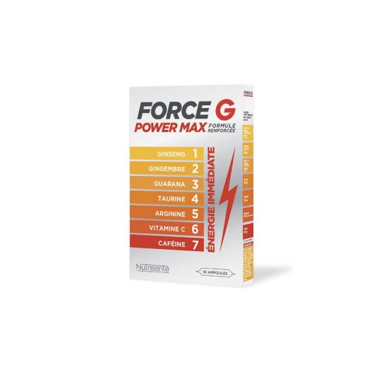 Force G Power Max 10ml Amp10 + øjeblikkelig energi er et kosttilskud designet til at give et hurtigt og effektivt boost mod fysisk og mental træthed. Dets avancerede formel, skabt af NUTRI SANTÉ, henvender sig til voksne, der ønsker at genvinde vitalitet og forbedre deres daglige præstation, især i perioder med træthed eller høje krav.