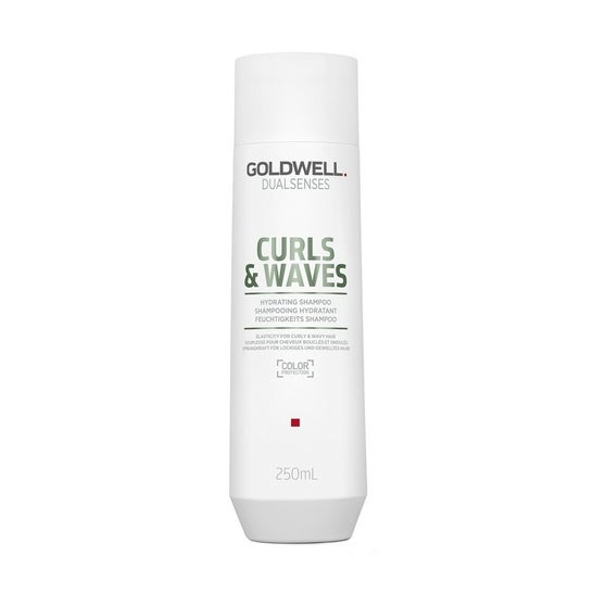 Goldwell Curls & Waves fugtighedsgivende shampoo, et produkt, der anbefales til pleje af naturligt krøllet og bølget hår eller efter en permanent. Den er beriget med et kompleks, der beskytter hårfarven ved hver vask. Den kan bruges både i hjemmet og i professionel pleje.