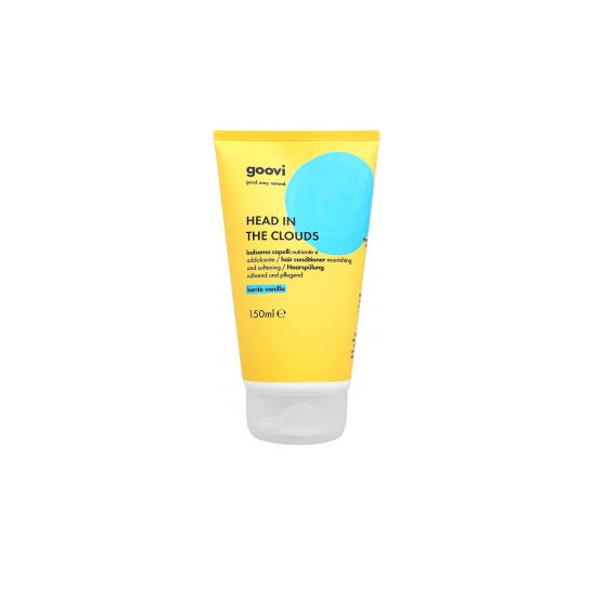 Goovi Head in the Clouds Shea Vanilla 150ml er en næringsgivende og genoplivende hår balsam med argan- og hørfrøolie samt kumquat ekstrakt. Uden silikone. Vegansk. Fri for mineralske olier, SLES, SLS, PEG, silikone, sulfater, kunstige farvestoffer og syntetiske dufte. Nikkeltestet.