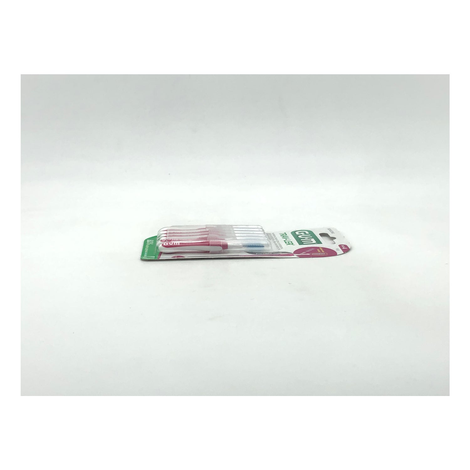 GUM® c epillo dental proxabrush tur er a Meget lille interdental børste perfekt til rejse. Med filamenter fastgjort til en central aksel af flettet rustfrit ståltråd, hvis filamenter er belagt med chlorhexidin for at opretholde hygiejne mellem anvendelser.