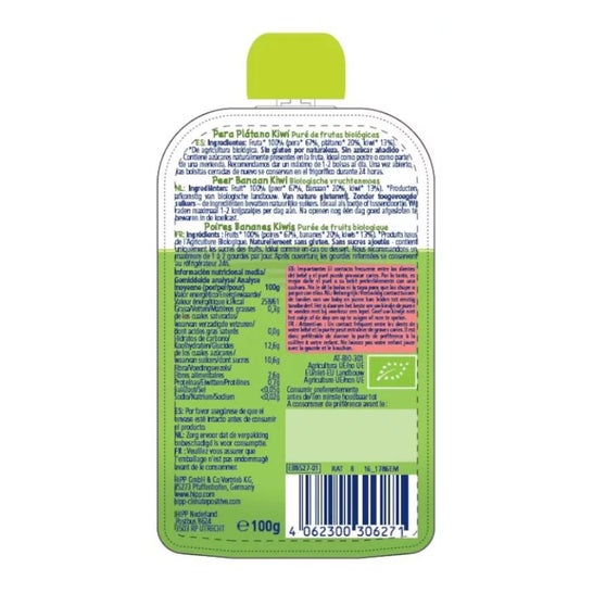 Hipp Pouches Pera Plátano Y Kiwi Bio 100g