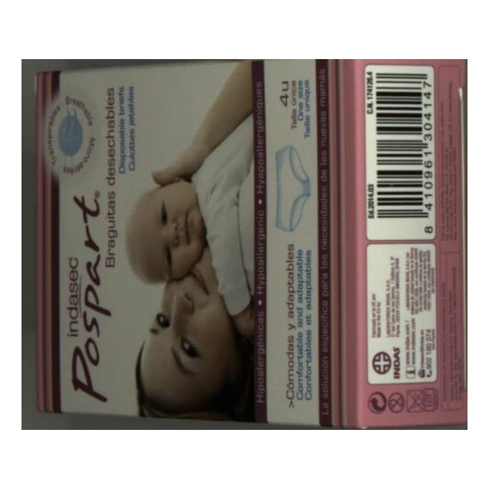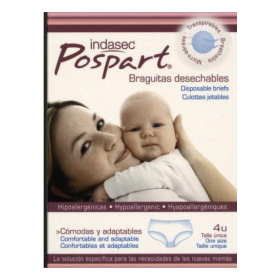 Indasec® Pospart engangsbukser er perfekte til dagene efter fødslen , især i tilfælde af sting eller kejsersnit. Det er en engangs, hypoallergen og åndbar bukse, der er meget behagelig og funktionel til tab af urin eller blod. Anbefales også til rejser, operationer eller ophold på hospitaler.