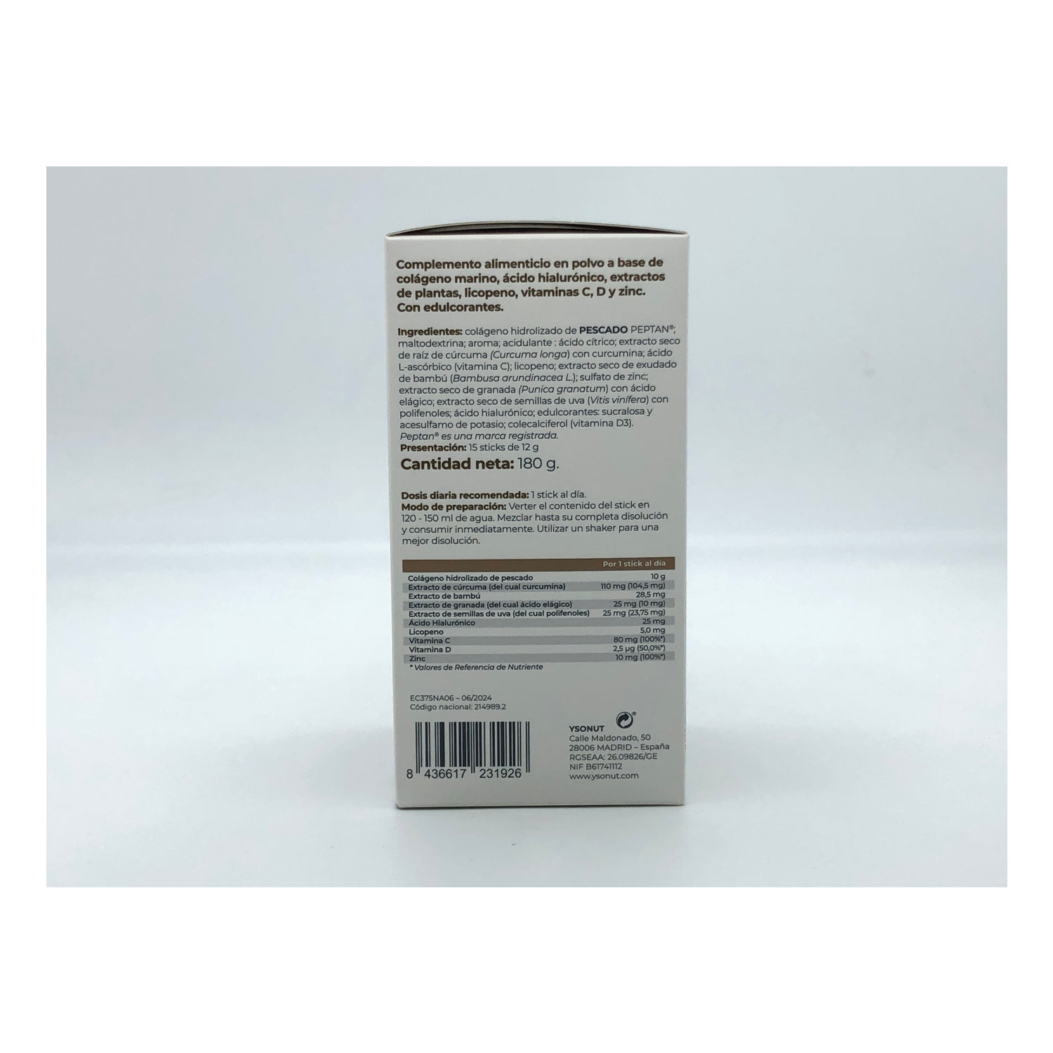 Inovance Hyalurovance 15sticks er et kosttilskud baseret på marint kollagen, hyaluronsyre og antioxidanter til pleje af hud og led, takket være dets formel og den virkning, det udøver på knogler, muskler og brusk, bidrager det til større smidighed, mobilitet og dynamik. Dens indhold af antioxidanter hjælper også med at beskytte mod frie radikaler og for tidlig ældning af huden, og den er velegnet til voksne og atleter. Velegnet til personer med gluten- og laktoseintolerance.