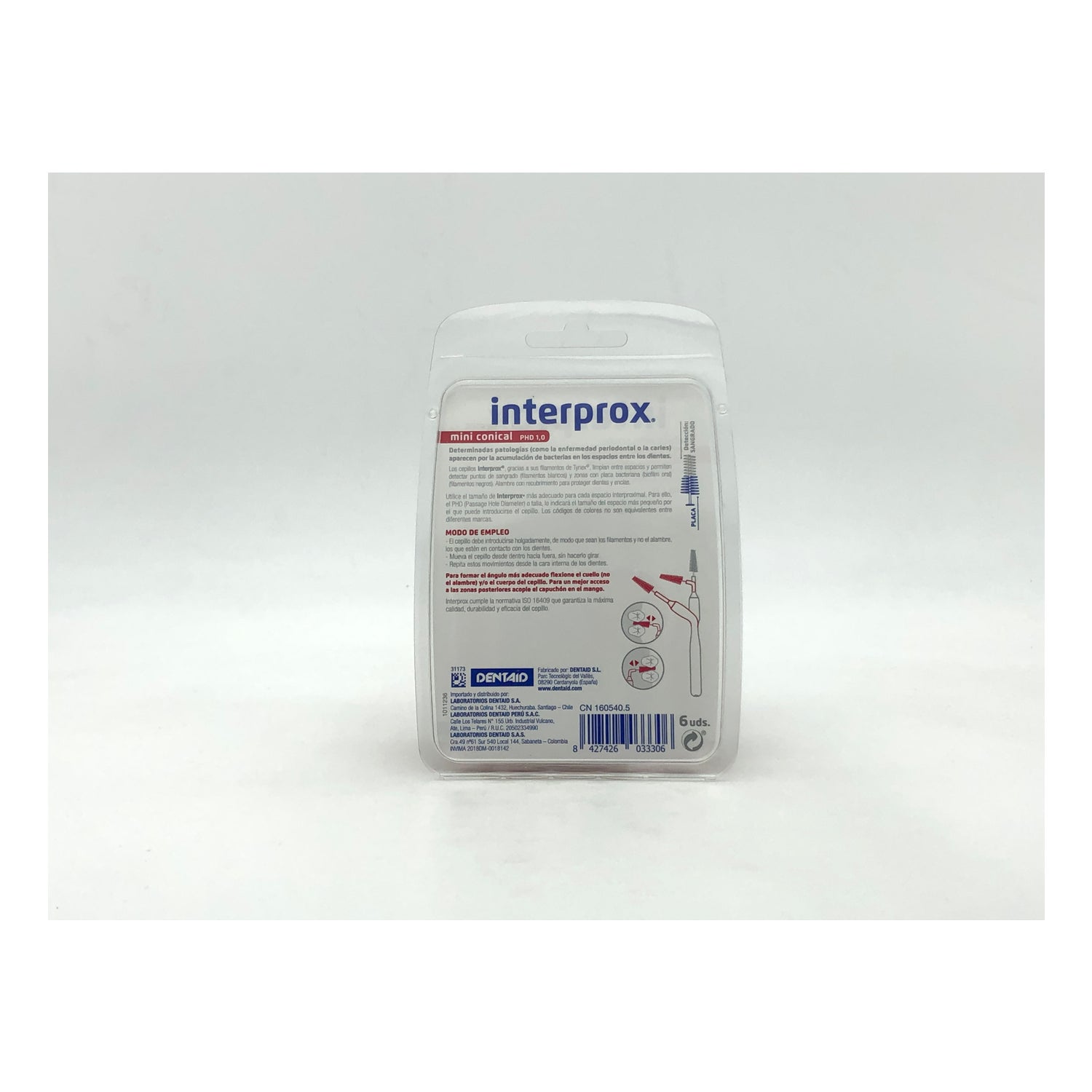 Interprox Mini Conical renser effektivt interproximale rum, eliminerer bakteriel plaque (oral biofilm) og hjælper med at beskytte tænder fra hulrum og dental-orale sygdomme. Diameteren af hullet, hvor børsten skal passere, måles af PHD med sin akronym på engelsk, for Interprox Mini Conical, diameteren er 1,0 mm (PHD = 1,0). Dens form letter en indføring vinkelret på mellemrummet mellem tænderne, så man undgår at skade tandkødene. Den har et beskyttelsesdæksel, som også tjener som kobling til håndtaget for at forlænge det og nå tilbage områder af munden. Det fleksible håndtag kan formes for at holde indgangen vinkelret også i disse områder. Det koniske hoved garanterer en dyb rensning mellem tænderne.