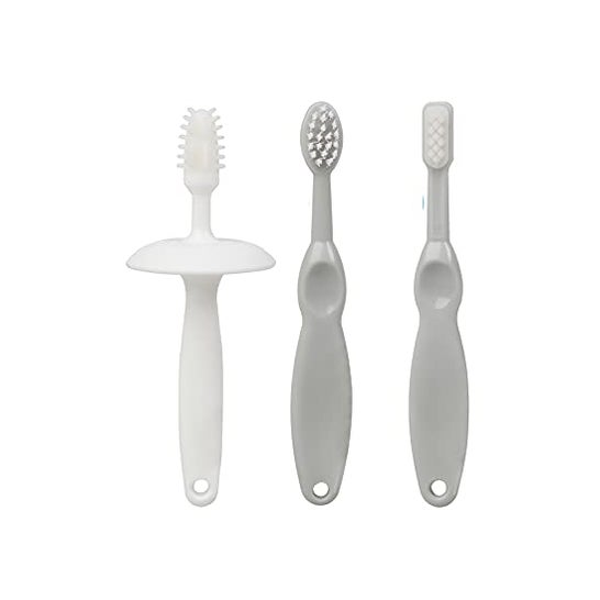 Mundhygiejnesæt til babyer, som indeholder en række børster, der letter børnenes læring på en evolutionær måde. Sættet indeholder:1 Silikone børste med børstehår, der indeholder en stopper, som forhindrer barnet i at stikke børsten for langt ind i munden.1 Silikone børstehår, der har samme form som konventionelle børster, ideel til at forberede de små på at tage springet til nylonbørster.1 Nylon børstehår.