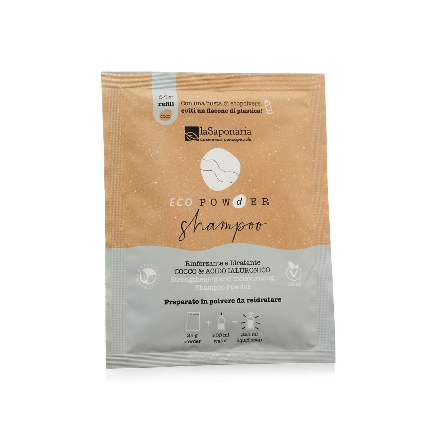 La Saponaria Eco Power Shampoo Styrkende Pulver 25 gr er et innovativt shampoo i pulverformat designet til at rehydrere og styrke dit hår. Med en kombination af ingredienser som kokosnød og hyaluronsyre, er dette produkt tænkt til at give blødhed og glans til dit hår, samt en behagelig duft af kokos.