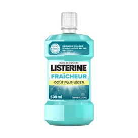 Listerine Freshness Mouthwash Light Flavour 500 ml er en alkoholfri mundskyl, der skal bruges efter tandbørstning for at fremme dyb mundhygiejne og frisk ånde.ud over tandbørstning hjælper denne mundskyl med at forebygge og reducere plak, den vigtigste årsag til tandkødsproblemer, mens den bekæmper bakterier, selv i svært tilgængelige områder, og giver langvarig frisk ånde.12 år og derover.Goût Plus Léger. Indeholder natriumfluorid (220 ppm F).hygiejneprodukt.
