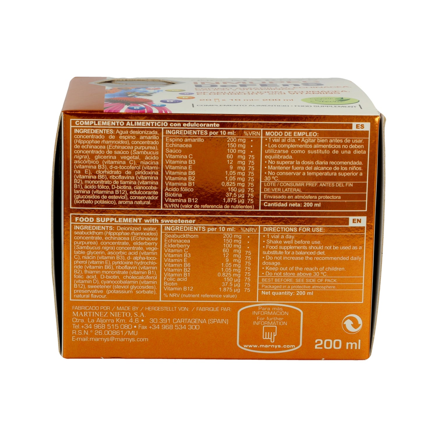 Kosttilskud i drikkeflasker, der hjælper med at give vitaminer til at understøtte immunsystemets funktion og energimetabolisme. Det er lavet med B- og C-kompleks vitaminer, med ekstrakter af planter som havtorn, echinacea og hyldebær, som traditionelt er kendt for deres anvendelighed i kulden. Den er også velegnet til vinterprocesser, ændringer i rutiner, rejser eller temperaturændringer, er velegnet til veganere og er sødet med Stevia.