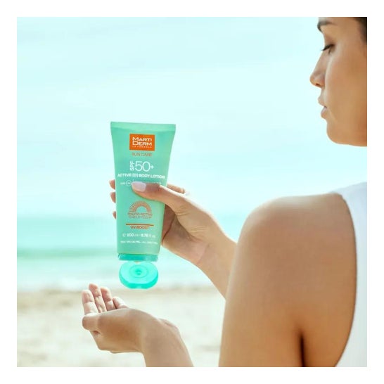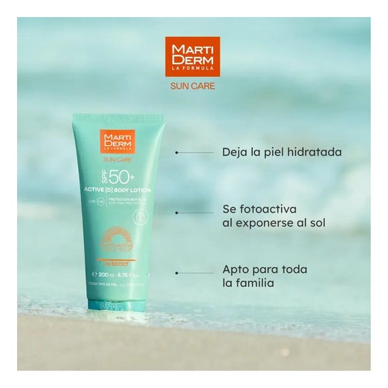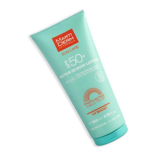 Martiderm Sun Care Active D Body Lotion SPF50+ 200 ml er en bodylotion, der beskytter huden intenst mod UVA-, UVB-, IR- og blålysstråling takket være Photo-Active Shield Tech®-teknologien.
