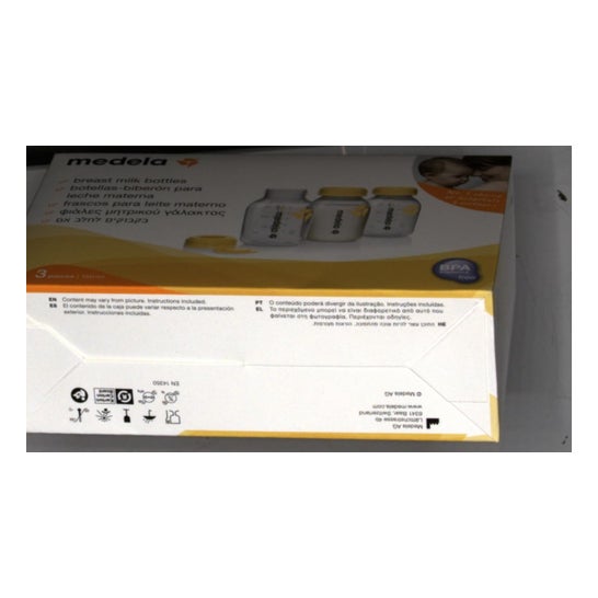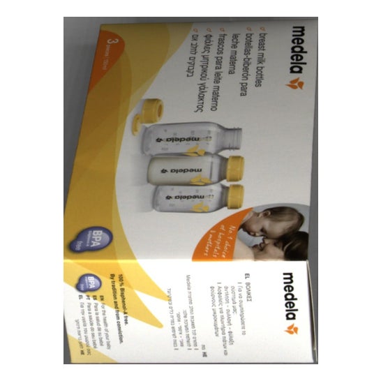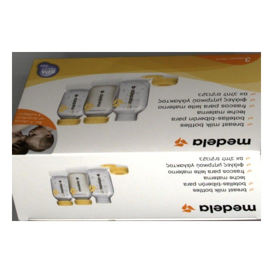 Medela flaskeflasker med kapacitet til 150 ml er 3 enheder, der giver dig mulighed for direkte at opbevare den udtrykte modermælk med ethvert ekstraktionsapparat ; sparer tid og uden at spilde en dråbe.