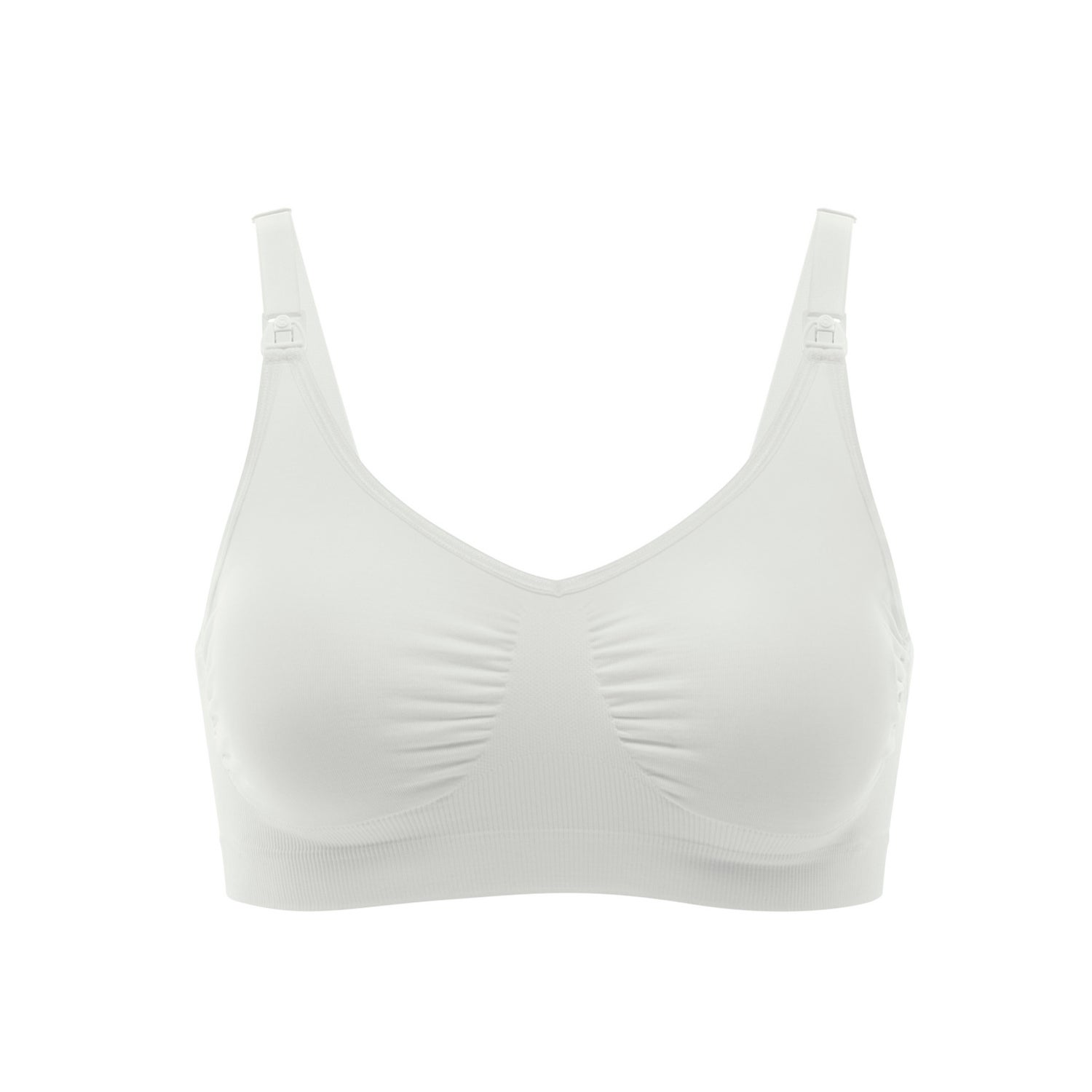 Behagelig bh designet til brug under graviditet og amning. Den tilpasser sig de forskellige størrelser af mave og bryst i denne periode, som kvinder gennemgår, når de bliver mødre. Leveres i hvid i en lille størrelse. Hjælper til at støtte brystet uden at irritere brystvorterne. Den har en god pasform takket være det elastiske bånd i bunden. Bløde, aftagelige kopper, ingen bøjle og sømløs finish. Amme-bh-clipsene er hurtige og nemme at frigøre med kun én hånd, så du kan komme i hud-mod-hud-kontakt.