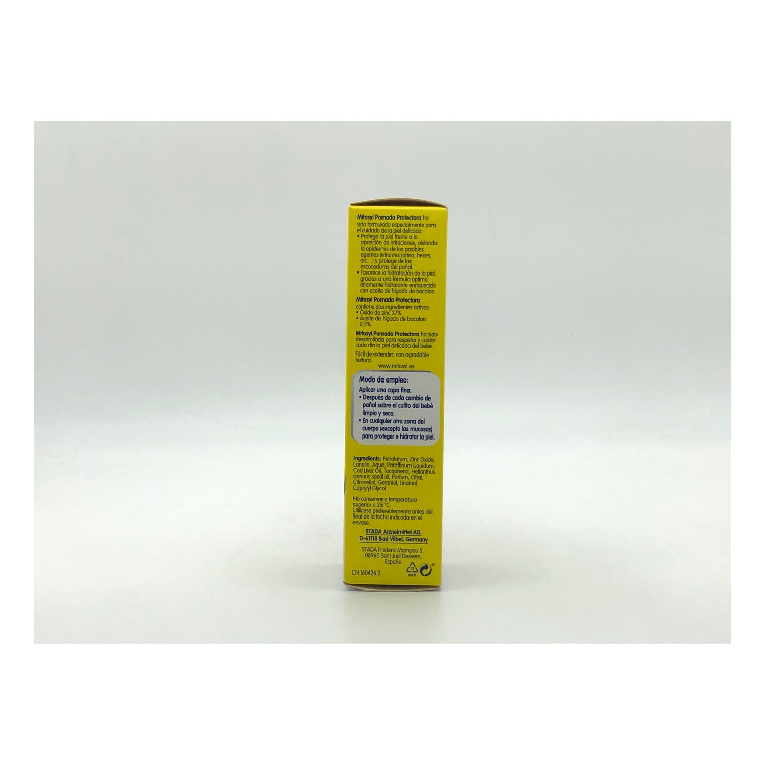 - Mitosyl ® beskyttende salve: Torskeleverolie 0,5%, Zinkoxid 27% (indeholder ikke nanopartikler). Petrolatum, zinkoxid, lanolin, aqua, paraffinum liquidum, gadus morrhua leverolie, aroma (geraniol), methylsalicylat, BHA.