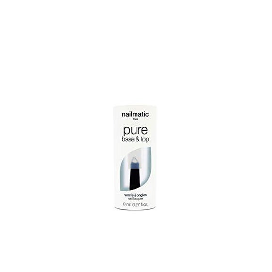 Nailmatic Pure Nail Polish Base & Top 8ml er et essentielt produkt til pleje og forskønnelse af neglene. Det er designet til at beskytte og forlænge holdbarheden af lakken, ideelt for dem, der søger en fejlfri og sund manicure, selv på følsomme eller skrøbelige negle.