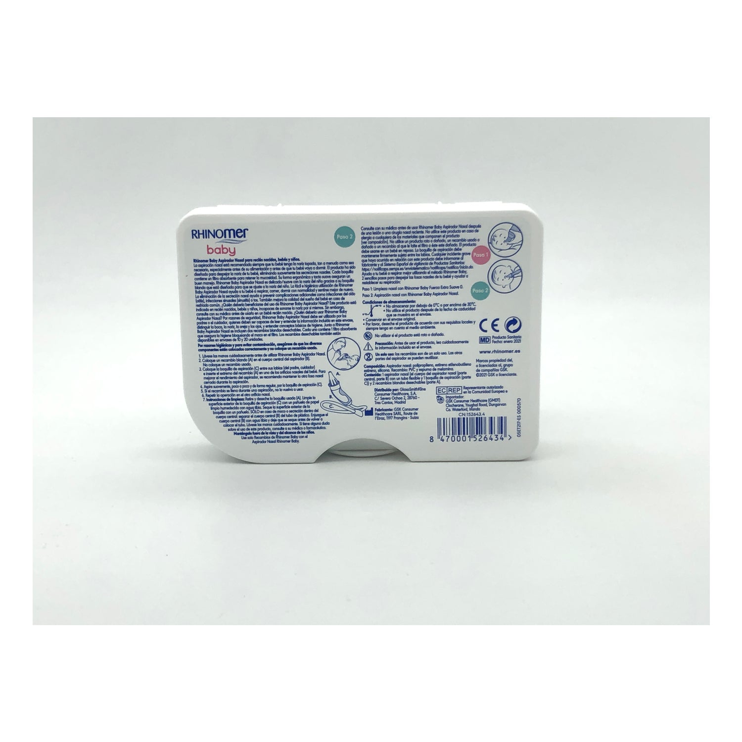 Rhinomer Baby Confort er en enhed, der gør det muligt for dig at holde din baby fri for slim. Det er meget almindeligt, at de i de første måneder har svært ved at ånde gennem munden, så det er vigtigt at holde deres næsebor frie. Den har en ergonomisk form for at lette brugen og ikke skade babyens næse. Derudover er dens udskiftninger absorberende fleksible og bløde filtre, der gør denne rengøring hygiejnisk og sikker. Hjælp din baby med at ånde bedre ved at bruge Rhinomer-metoden.