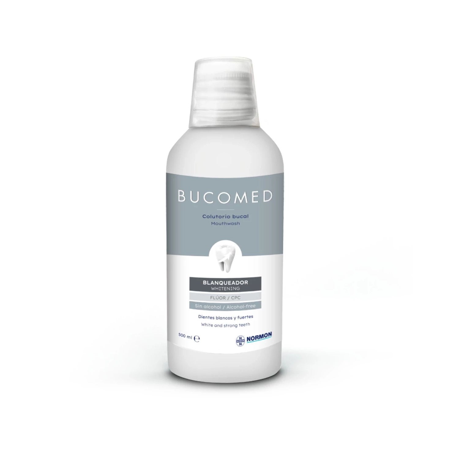 Normon Bucomed Blegemiddel Mundskyl 500 ml er et blegemiddel mundskyl med mintsmag, designet til at støtte daglig mundhygiejne og hjælpe med at genoprette den oprindelige hvide farve på tænderne uden at skade emaljen. Det fremmer fjernelse af overfladiske pletter og giver en friskhedsfølelse ved hver skylning.