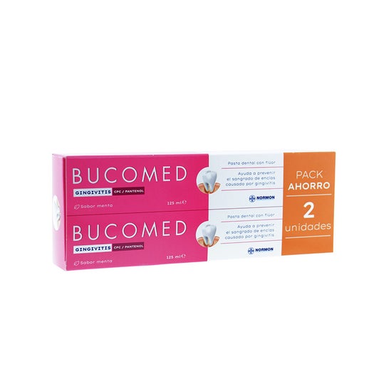 Normon Bucomed Tandpasta Gingivitis 2x125 ml er en dobbeltpakke, der inkluderer 2 tuber tandpasta på 125 ml med mentholsmag. Den er beregnet til daglig pleje af følsomme tandkød eller tandkød med tendens til betændelse og hjælper med at forhindre blødning af tandkød forbundet med gingivitis.