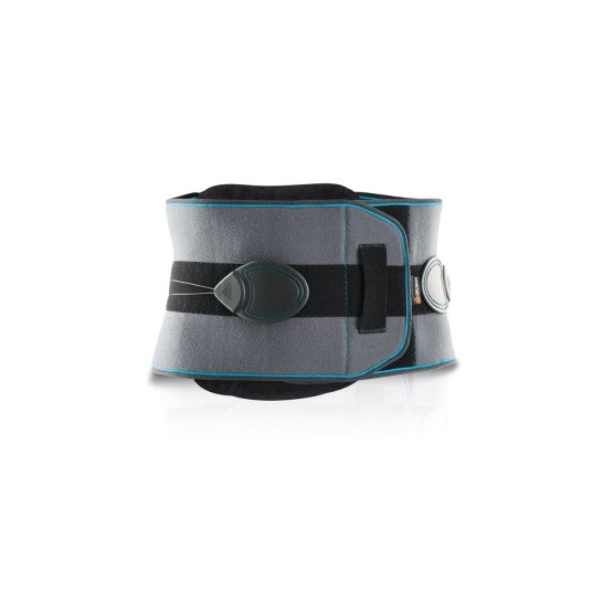 Dette korset fokuserer på immobilisering og beskyttelse af lænden, og tilbyder en fast støtte, der tilpasser sig brugerens anatomi. Dets justeringssystem med multipoleas, sammen med dets semi-stive og termoformbare komponenter, gør det muligt at regulere graden af immobilisering og sikrer en ensartet kompression uden besvær.