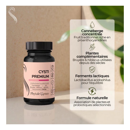 Phytalessence Cysti Premium 60 Perler er et kosttilskud rig på ekstrakter af tranebær, hibiscus og lyng, designet til at forebygge urinvejsinfektioner.