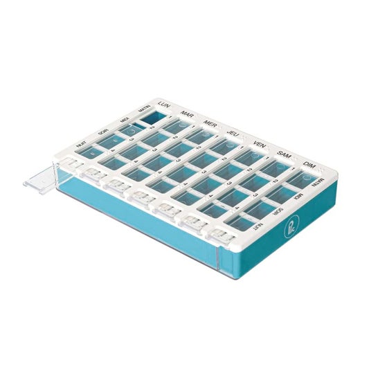 Dette produkt har 28 rum, fordelt på en måde, der svarer til de syv dage i ugen og muliggør fire indtagelsestidspunkter dagligt: